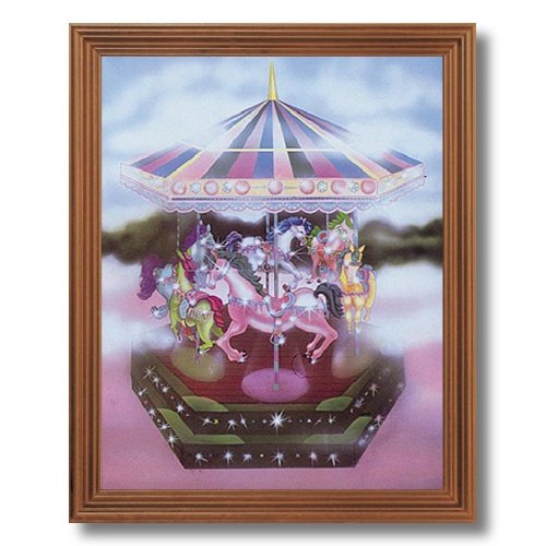 Pink Horses Carousel Kids Room Animal Picture Oak Framed Art Print Review